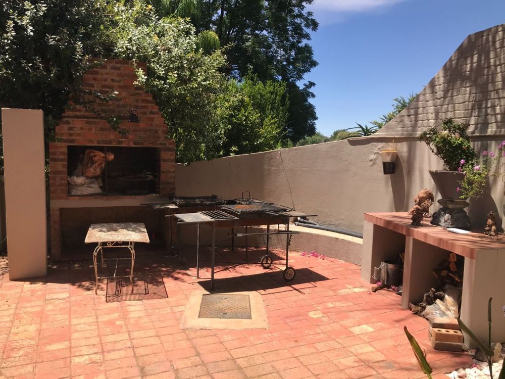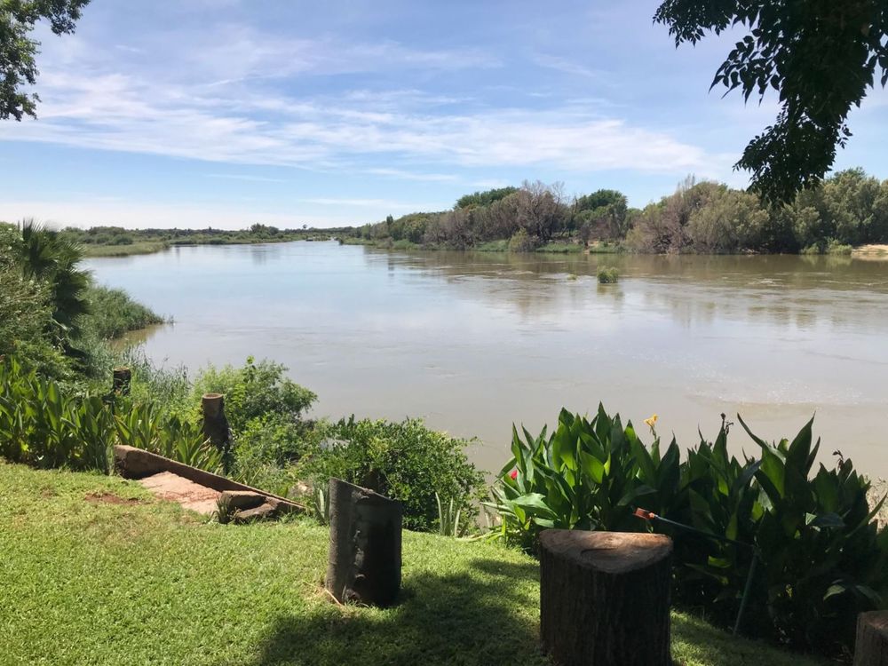 This house boasts 7 bedrooms with ample built-in cupboards and en-suit bathrooms, an open plan family- and dining room with excellent views on the garden and river, kitchen with separate scullery and laundry, a man-cave with built-in bar, very large storage room (cellar), domestic toilet, double garage with electric door and 2 carports for 6 cars. Laminated floor in 4 of the bedrooms, living room and dining room. All the bedrooms have a split unit and the rest of the house has water cooler outlets. A built-in braai and entertainment area in the garden.
