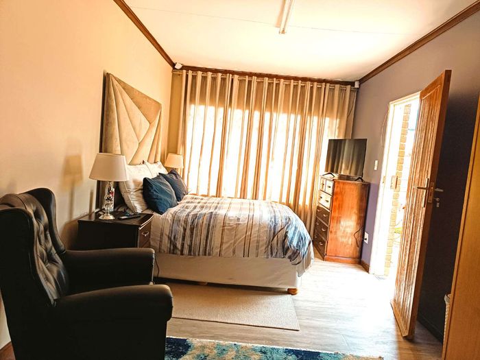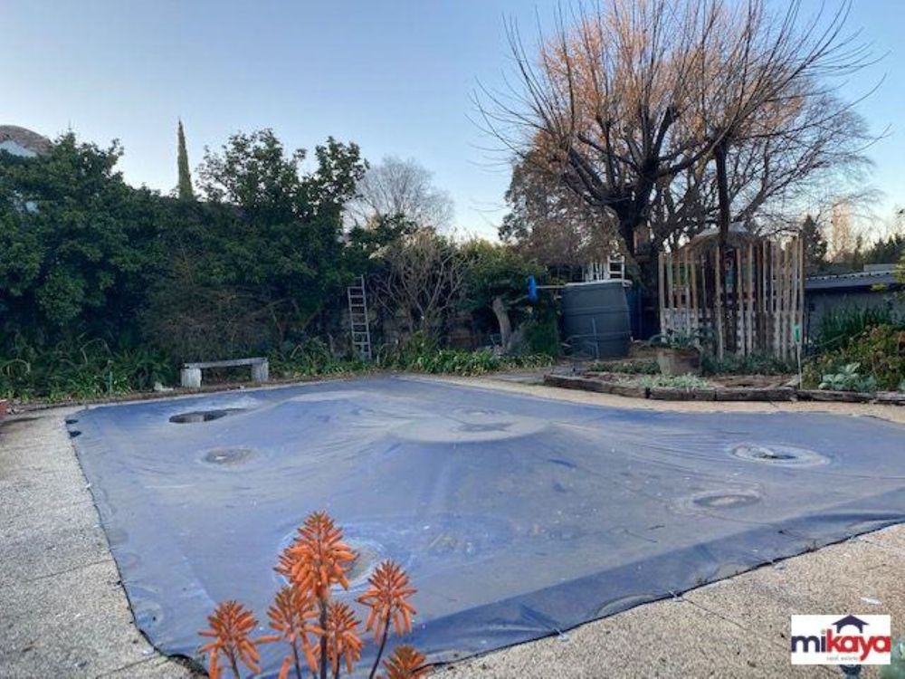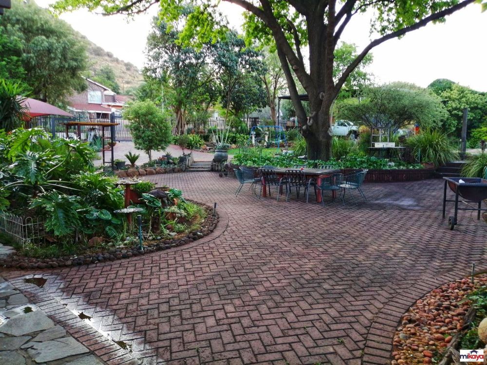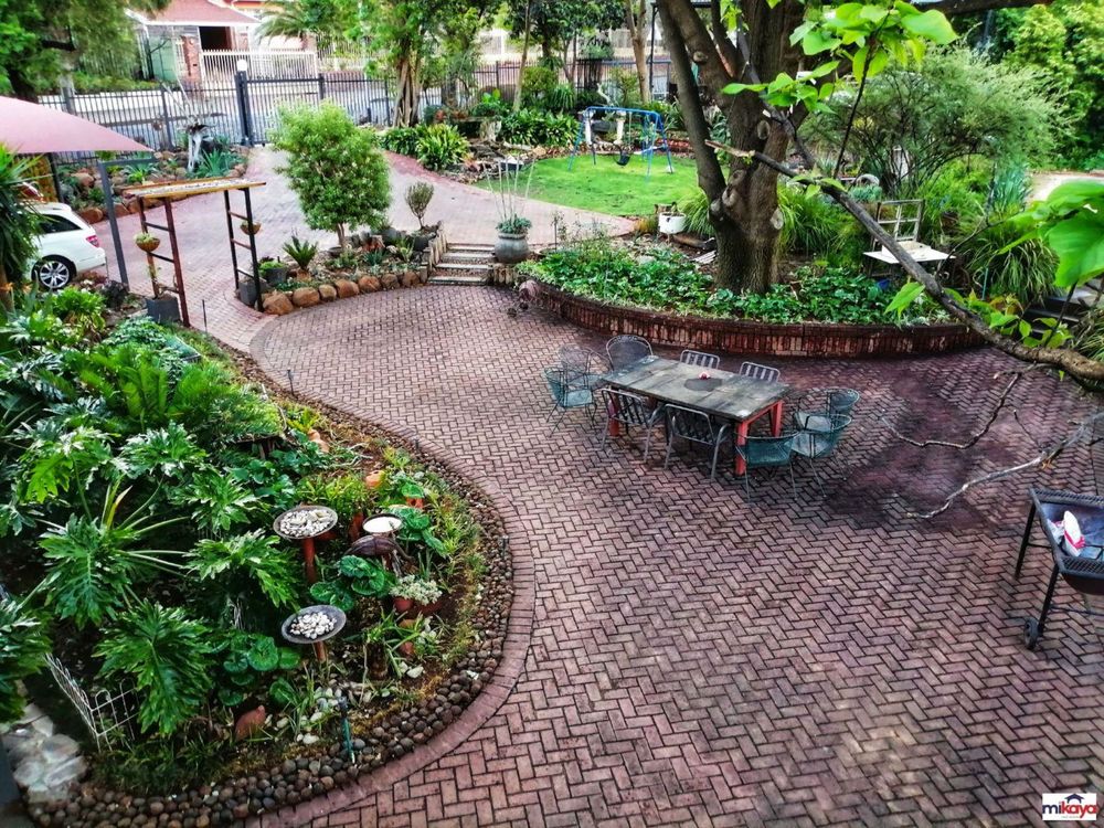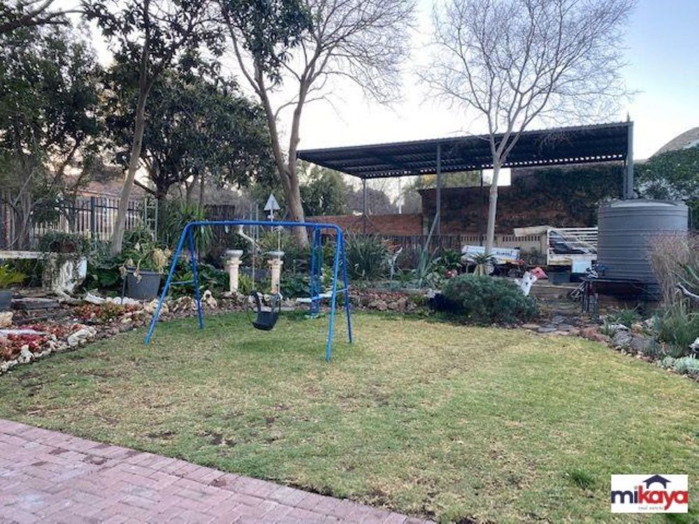 The garden, landscaped with indigenous plants, irrigation system, gravel walkways, oak tree, strong borehole with a 7000L water tank and pressure pump connected to the house, swimming pool and lots of space for playing provides a peaceful haven that needs little maintenance.