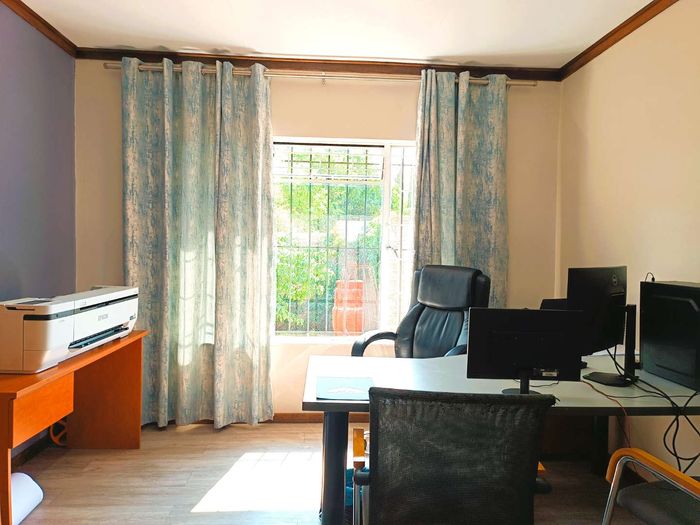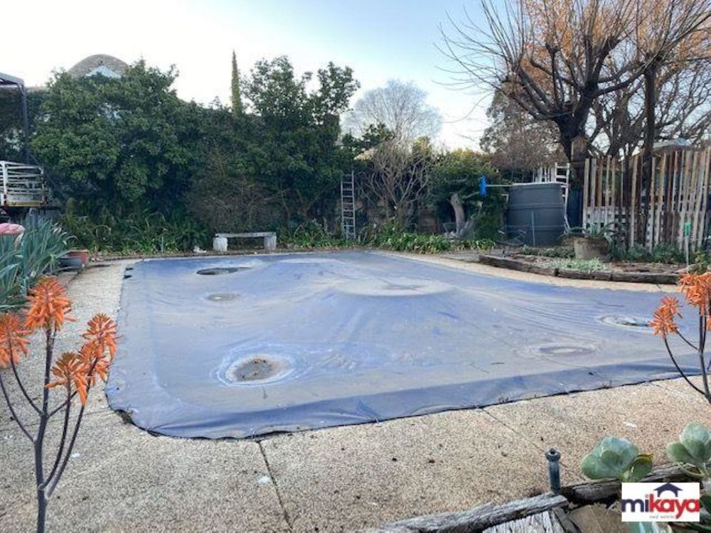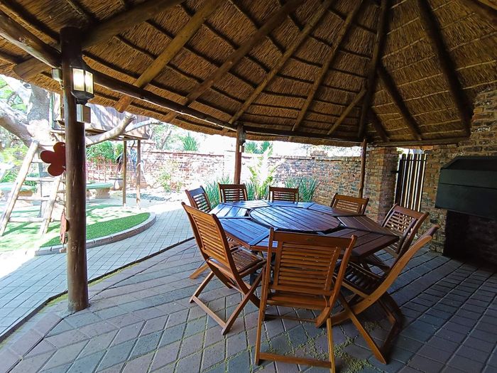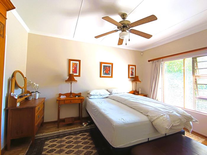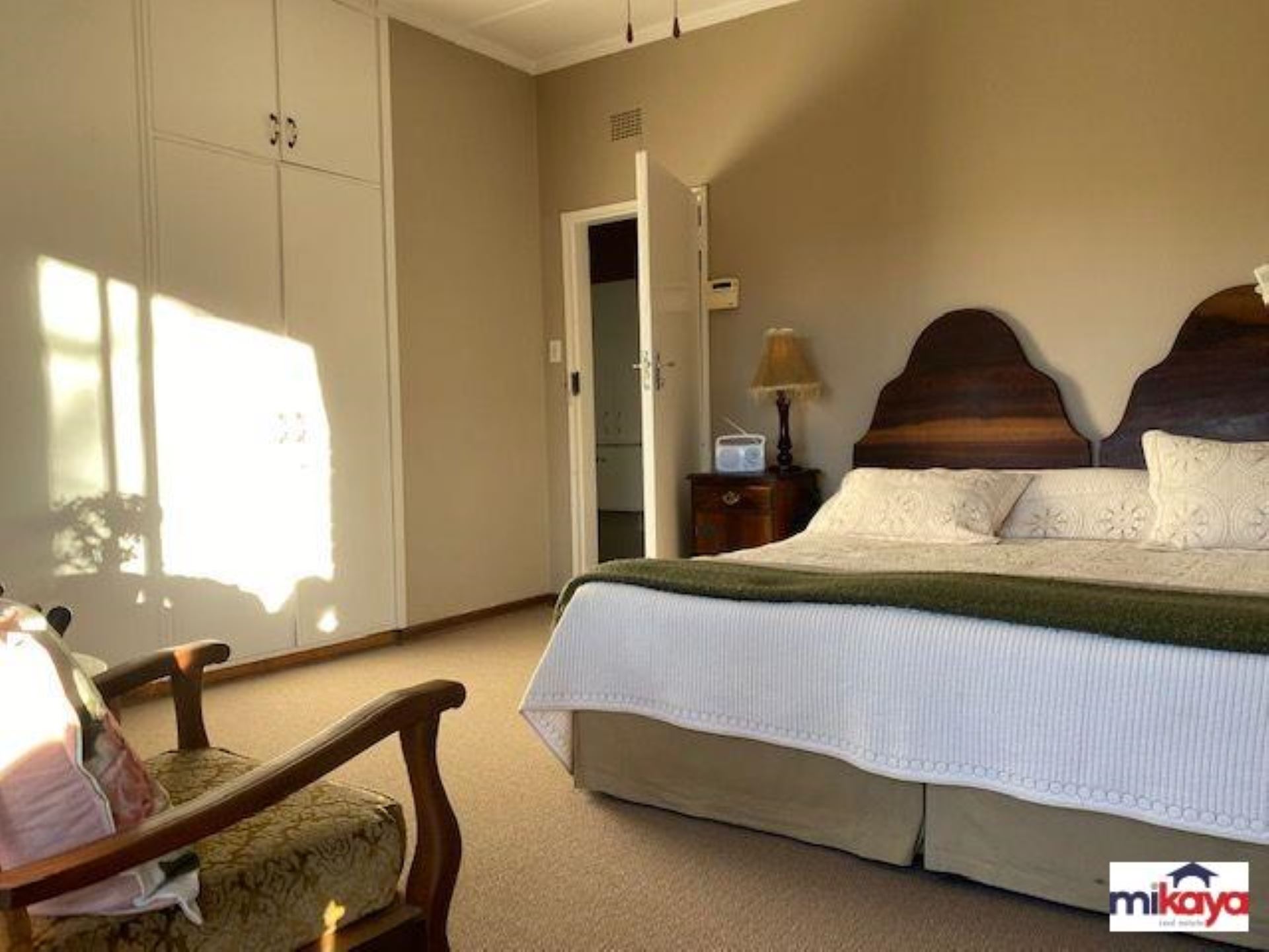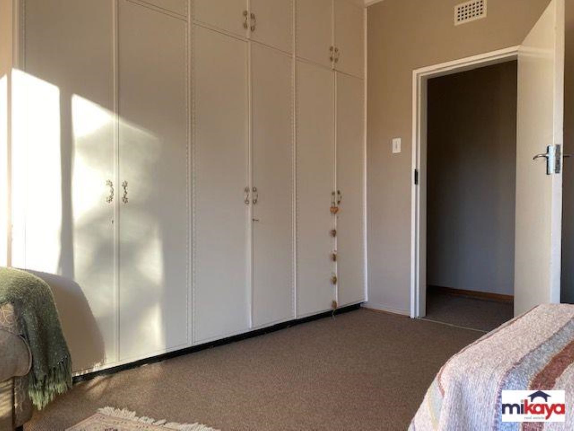 The garden, landscaped with indigenous plants, irrigation system, gravel walkways, oak tree, strong borehole with a 7000L water tank and pressure pump connected to the house, swimming pool and lots of space for playing provides a peaceful haven that needs little maintenance.