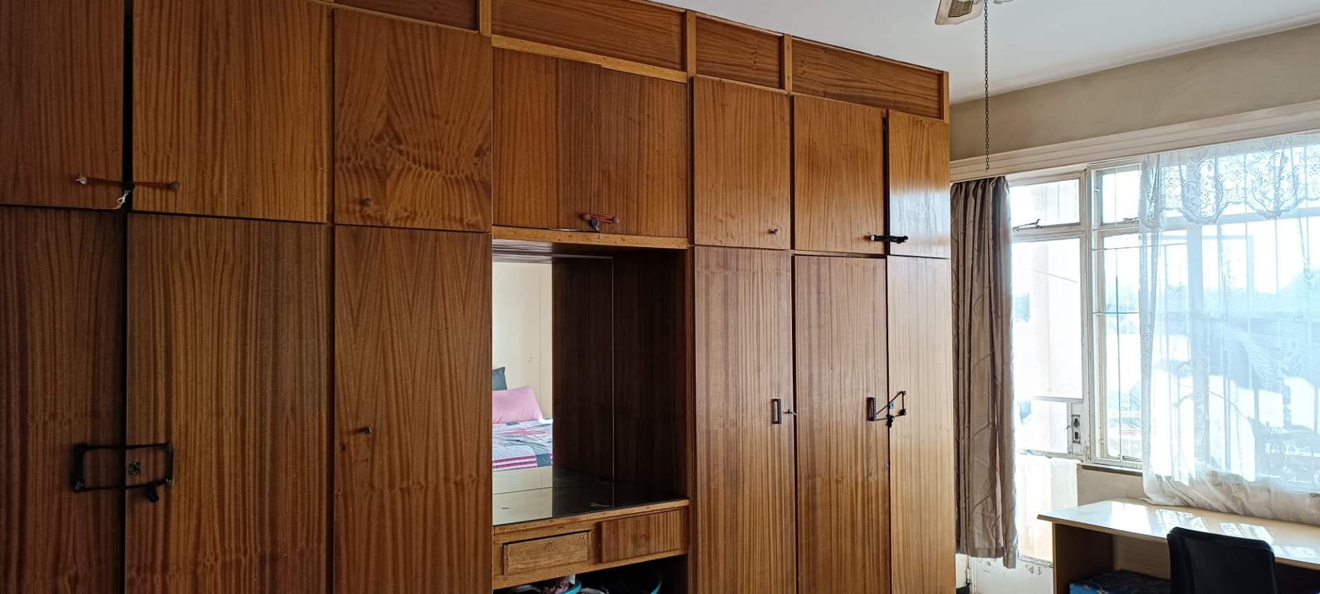 The property features 3 bedrooms with built-in cupboards, a kitchen, bathroom, and a balcony that can be accessed from two of the bedrooms.
