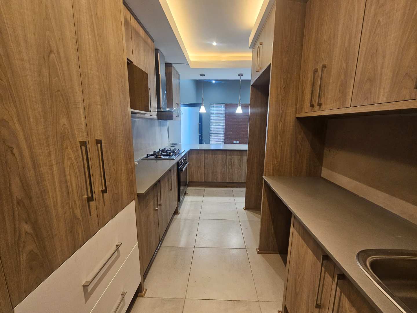The ground floor welcomes you with expansive open-plan living areas that flow effortlessly from the contemporary kitchen to the dining and lounge spaces. The kitchen is both stylish and functional, featuring granite countertops, a gas hob, under-counter oven, and generous cupboard space.