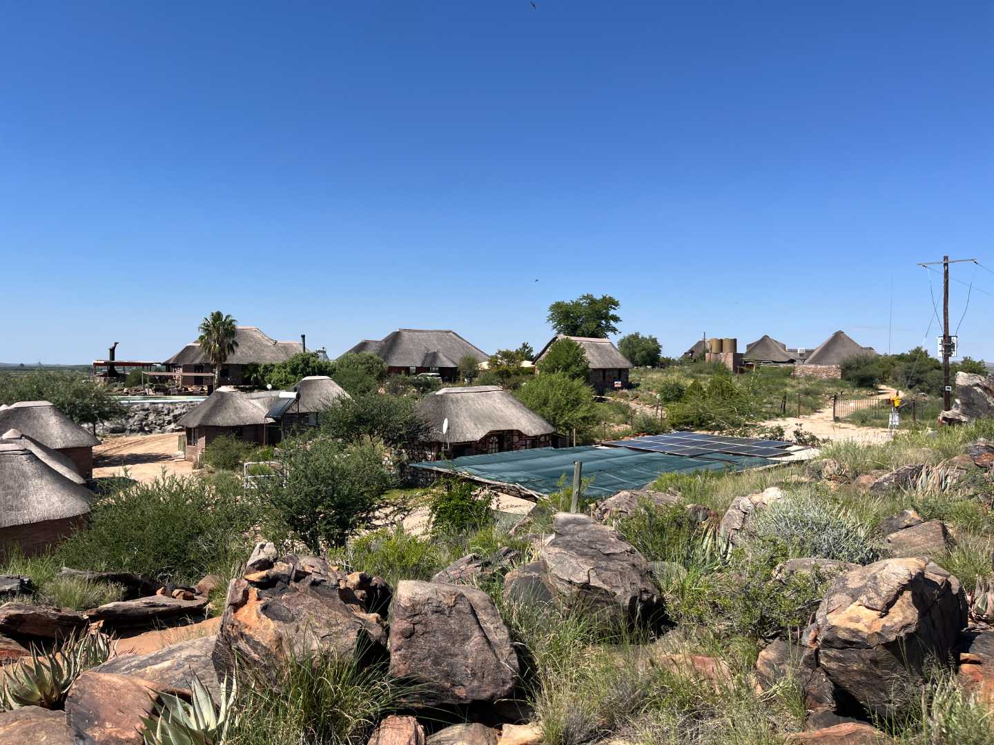 The property features a charming, thatched roof “town” atmosphere, creating a warm and inviting retreat for guests seeking tranquillity and natural beauty.