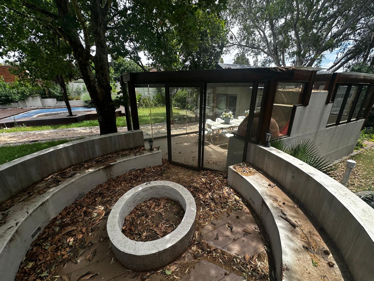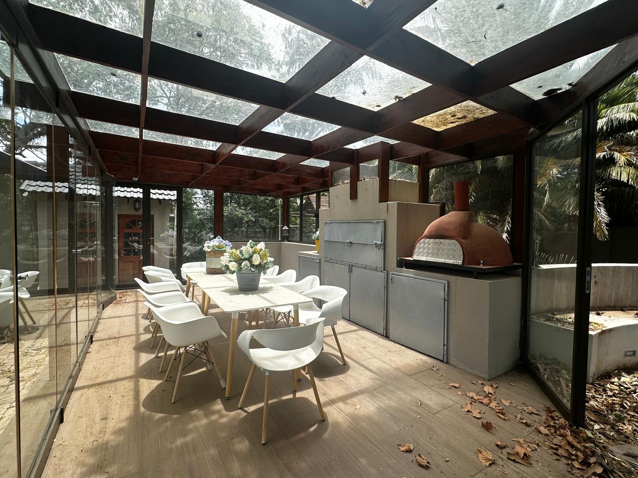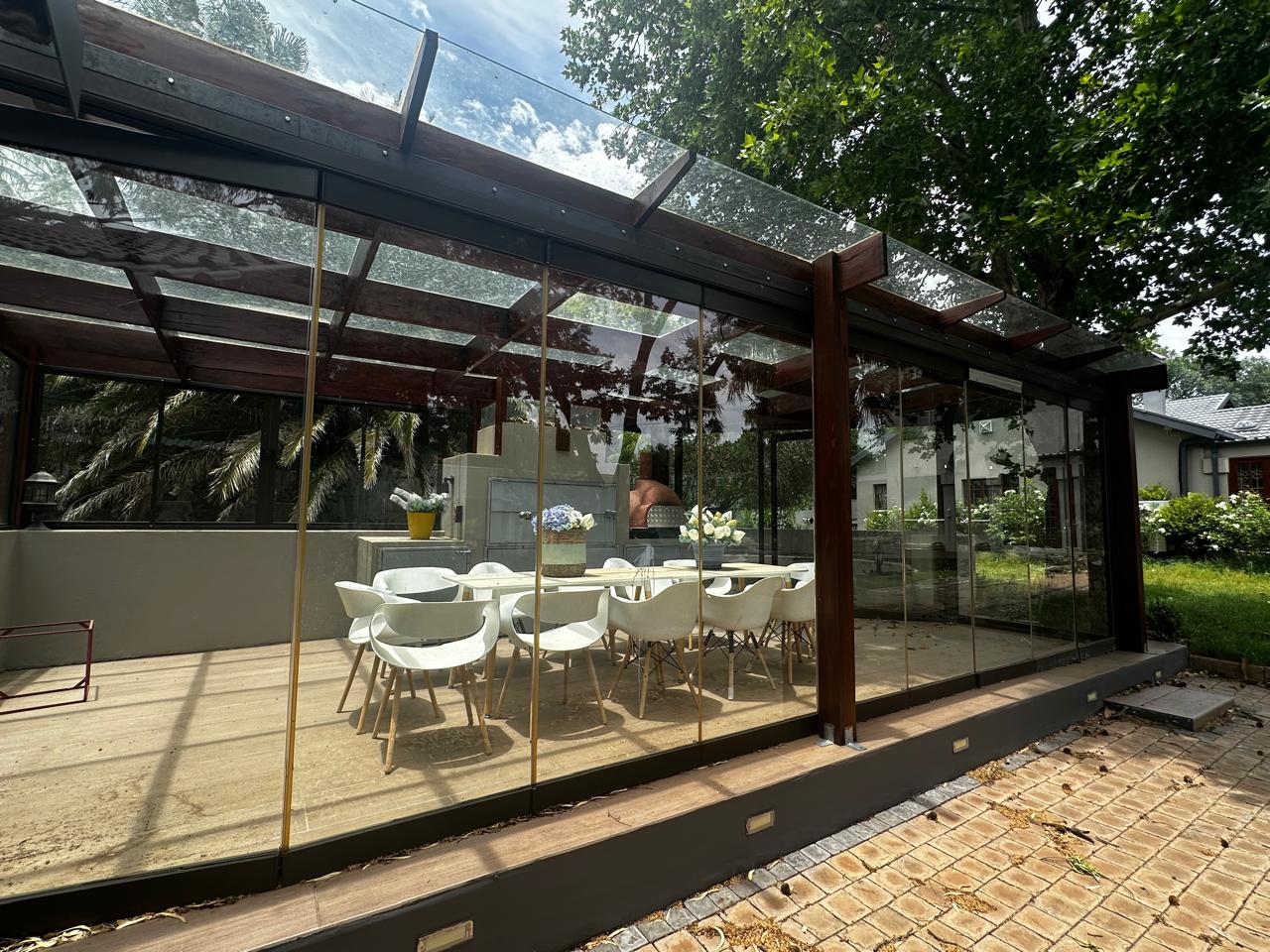 Step outside to a sparkling swimming pool nestled amidst gardens filled with towering trees, a delightful braai room complete with a pizza oven, and an inviting boma for memorable evenings with loved ones.