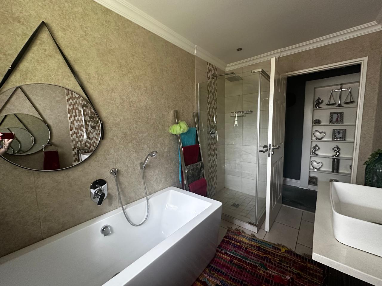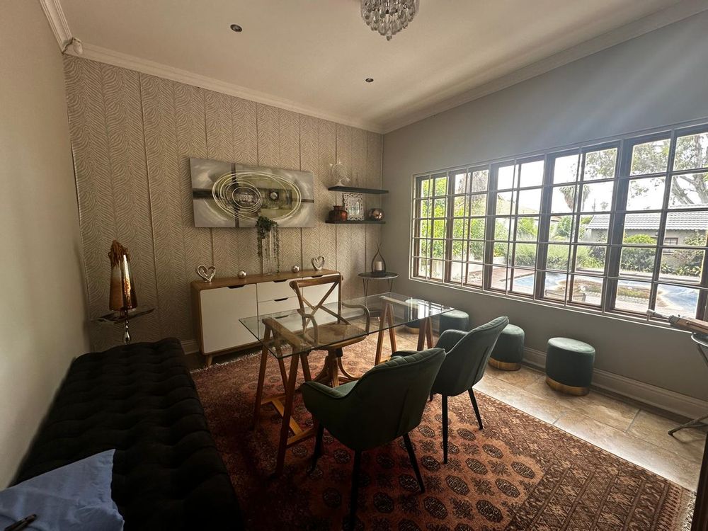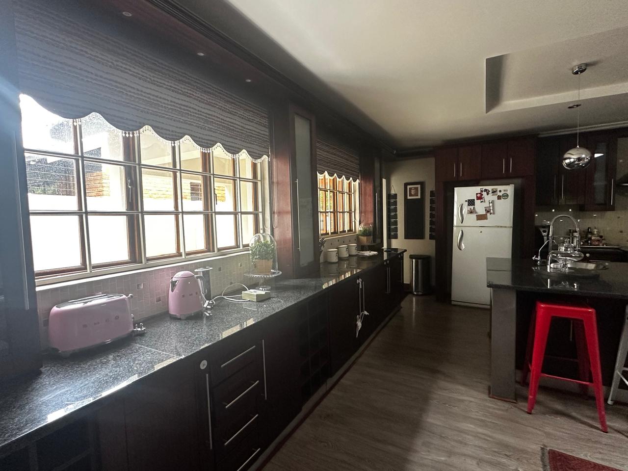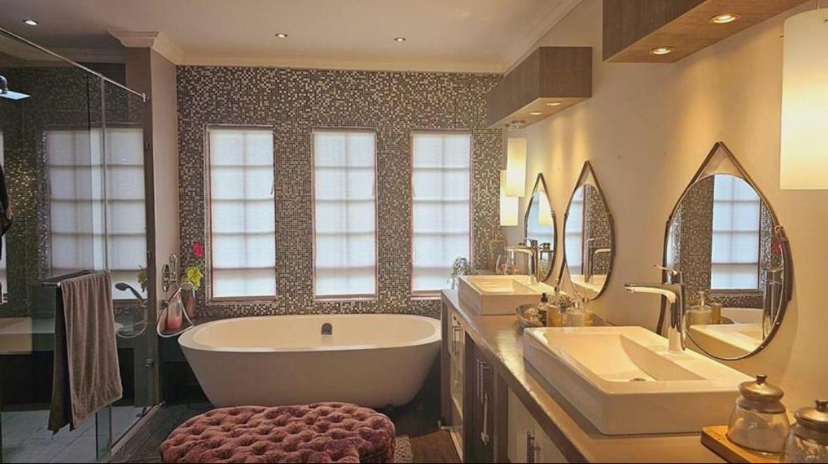 Step outside to a sparkling swimming pool nestled amidst gardens filled with towering trees, a delightful braai room complete with a pizza oven, and an inviting boma for memorable evenings with loved ones.