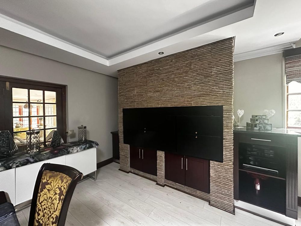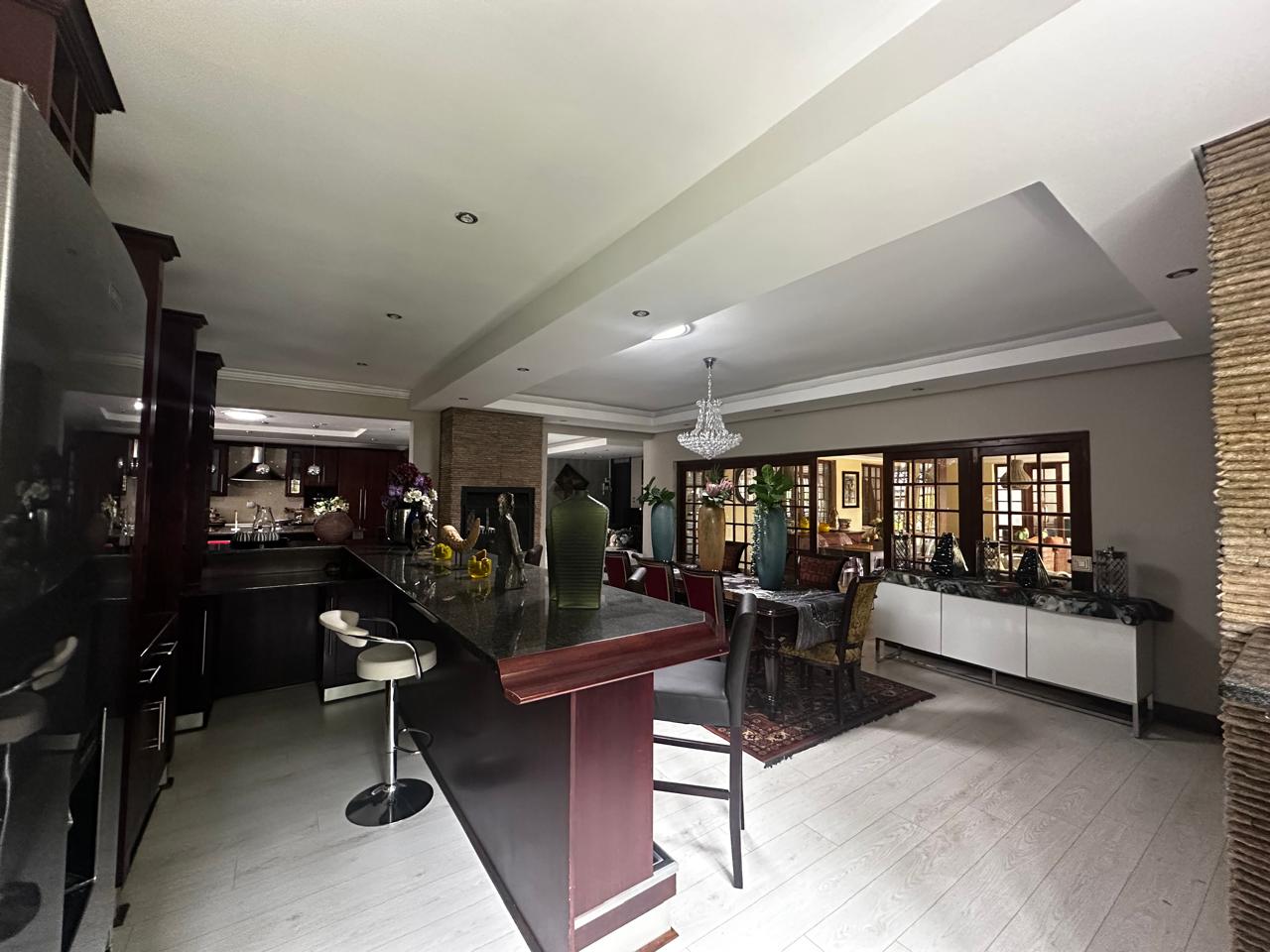 Enjoy the seamless flow of the formal lounge, informal lounge, and dining room, equipped with a built-in braai, perfect for family gatherings. A cozy family room with a built-in bar and fireplace, along with a wine cellar, adds to the allure of this captivating home.