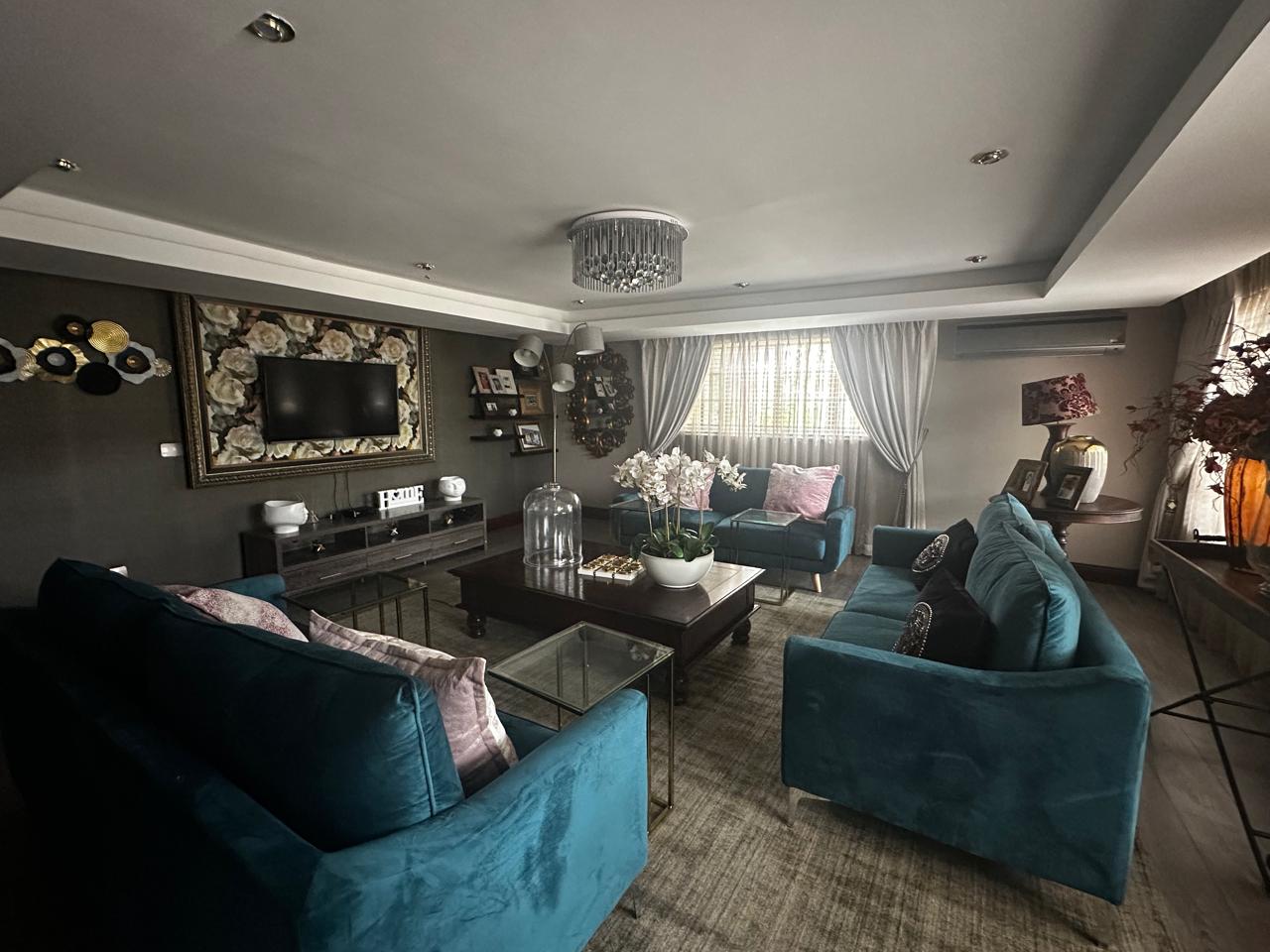 Featuring 5 spacious bedrooms and 3 luxurious bathrooms, this residence boasts exquisite vinyl flooring complemented by glamorous chandeliers and sophisticated bulkhead ceiling lights.