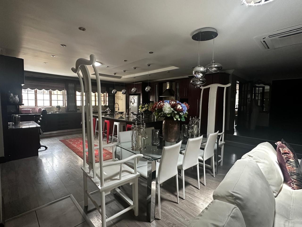 Safety and security are paramount here, with CCTV surveillance, outdoor beams, an alarm system, electrified fencing, and burglar bars ensuring peace of mind. Additional features include staff accommodation, 3 garages, and ample secure parking.