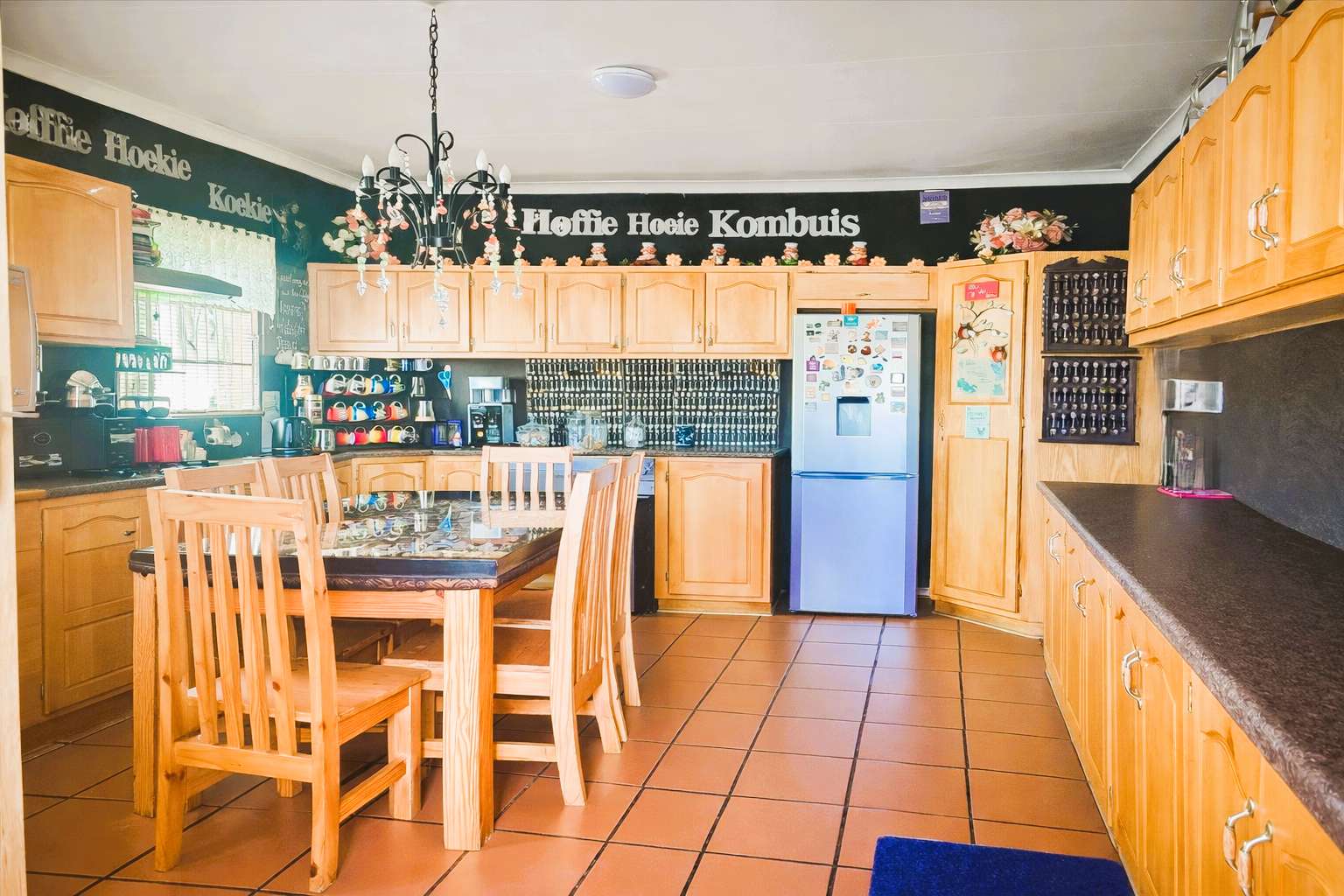 Security is top-notch with an electric fence and double electric entrance gates. Parking is plentiful with a double extra-length electric garage, a double shaded carport and parking space for more vehicles behind secured gate. A large Wendy house in the backyard provides additional storage space.