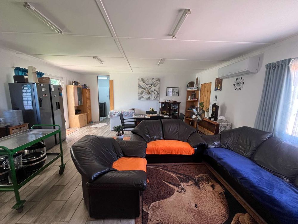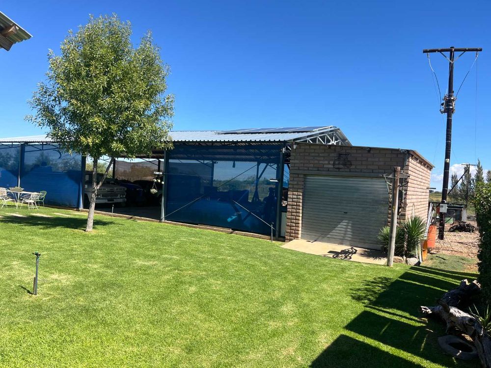 Water supply is well taken care of with canal water, a 33,000L dam, and two 5,000L tanks fitted with pressure pumps, as well as an additional pump for garden irrigation. The 5kVA solar system, complete with inverter, battery, and 8 panels, adds to the property's efficiency and cost-saving appeal.