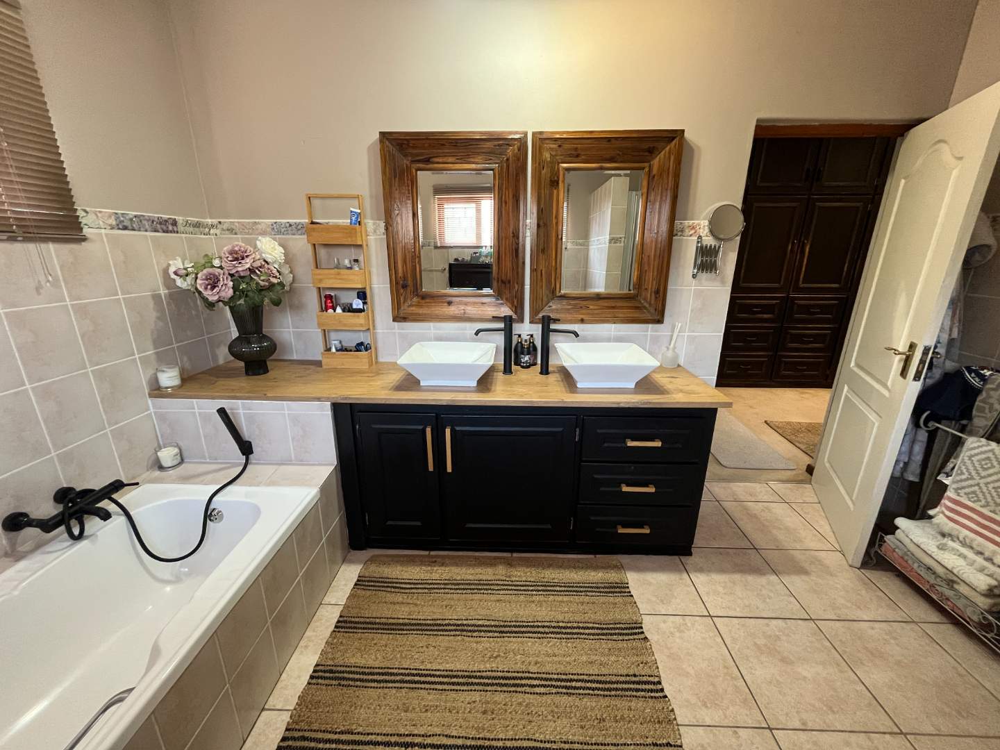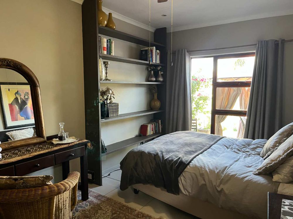 The main bedroom is built on master scale with cupboard space galore and a beautiful view on the garden and splash pool. The en-suit bathroom has a bath, shower, basin, toilet and heated lights for the cold winters. The other two bedrooms are private on the other side of the house with a shared bathroom and separate toilet. A pantry with shelves as well as a storeroom for extra storage. A dedicated study with lots of space and shelves.
