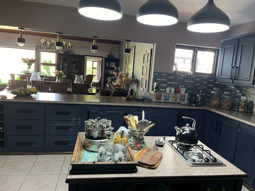 As you step through the inviting entrance, natural light floods the spacious interior, accentuating the beautiful modern finishes adorning every corner. The heart of the home is the expansive open-plan kitchen, living, and entertainment areas with a cosy fireplace. A separate scullery/laundry with courtyard for your convenience. The oversized windows in the living spaces frame picturesque views of the lush surroundings. Adjacent to the living room, a covered patio with built-in braai beckons gatherings with loved ones, seamlessly blending indoor and outdoor living.