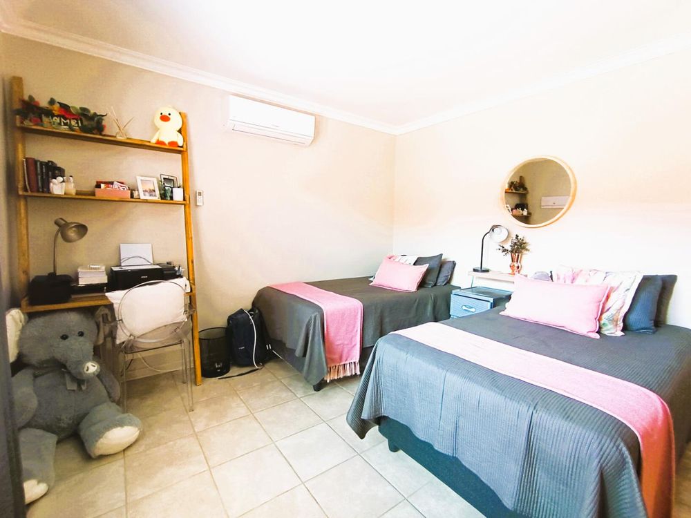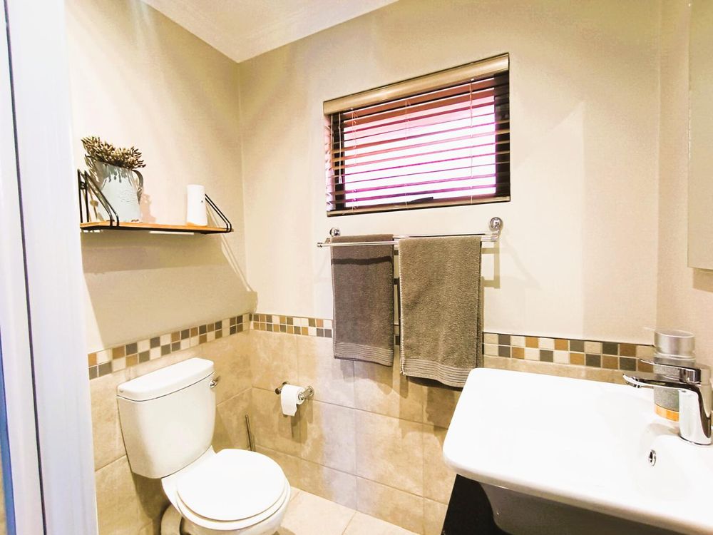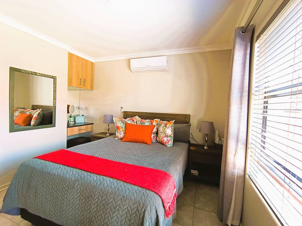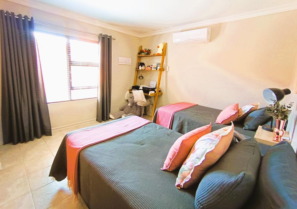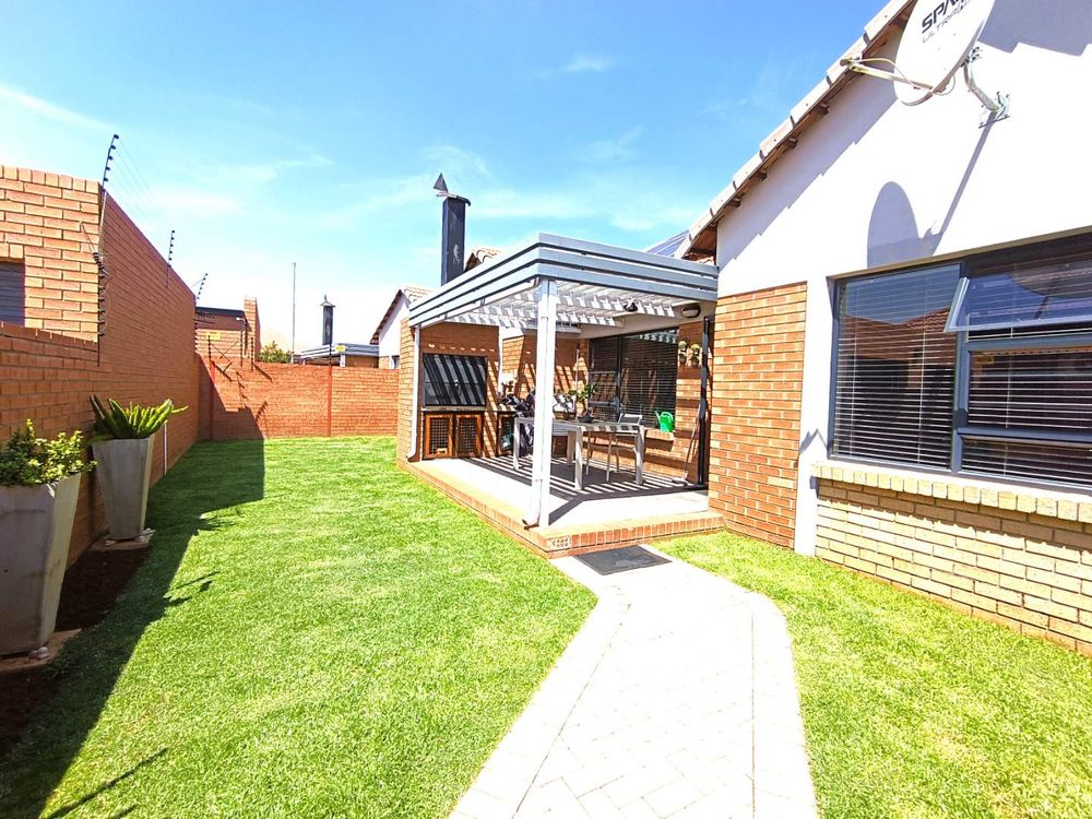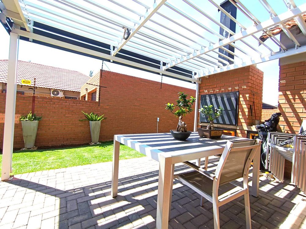 Step through the front gate of this duet and you’re welcomed by a lush, irrigated lawn that sets the tone for this inviting home. A sunlit patio with a louvre roof and built-in braai extends the living space outdoors, making it the perfect spot to entertain or unwind while enjoying your surroundings.
