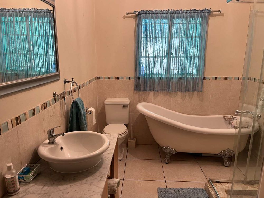 Step into this delightful family home and discover a haven of comfort and cosy living. Situated close to schools, hospitals, Kalahari mall and other amenities. Boasting 4 spacious bedrooms, 2 full and beautiful bathrooms (main en-suit), open plan dining room and lounge, TV/family room and the kitchen, this home offers the perfect blend of functionality and style. What makes this house so special is the lovely wooden floors and high ceilings.