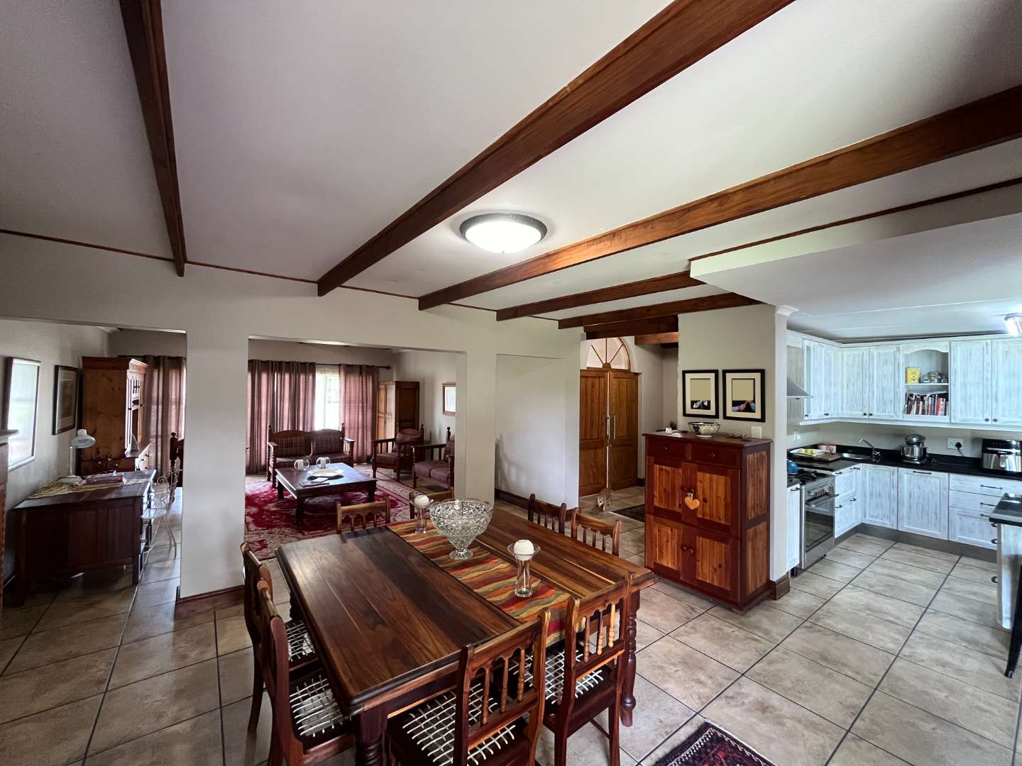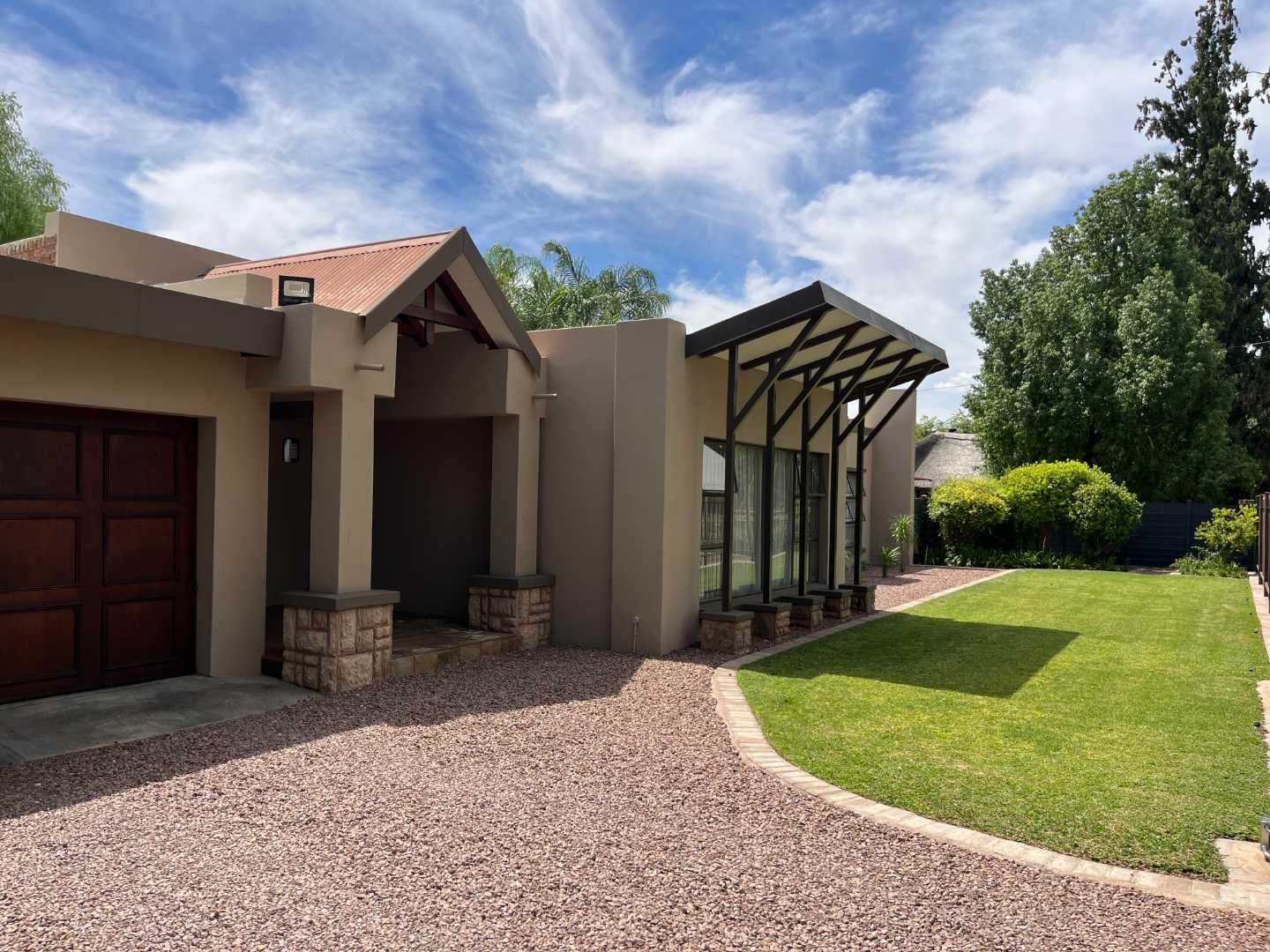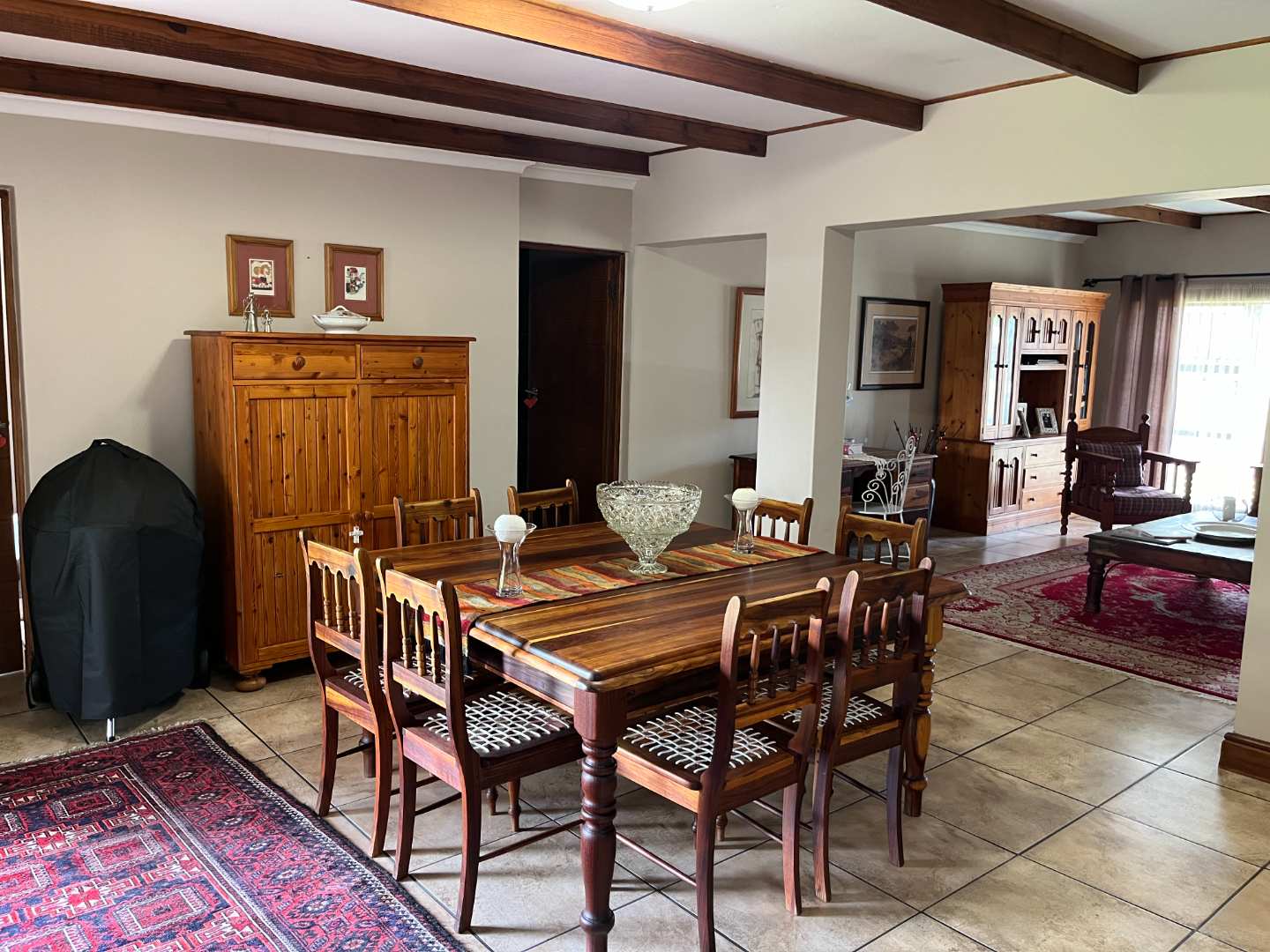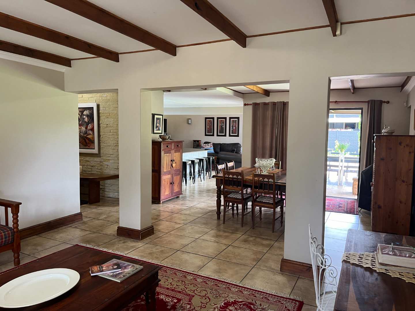 A striking large wooden front door welcomes you into an impressive entrance hall, setting the tone for the elegant interiors that follow. The home boasts expansive open-plan living spaces, including a sophisticated lounge, dining area, and a spacious TV/family room with built-in braai, designed for effortless entertaining and relaxed family living.