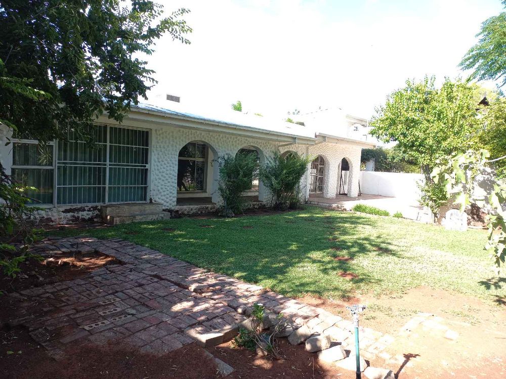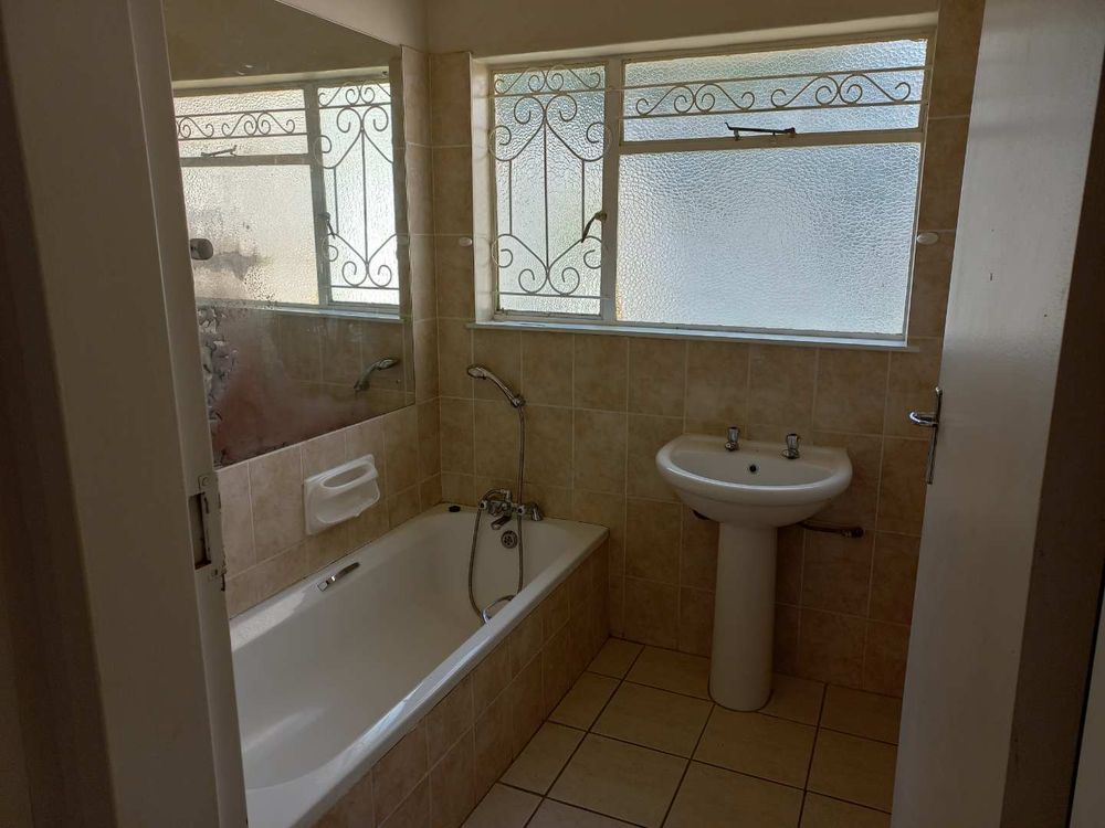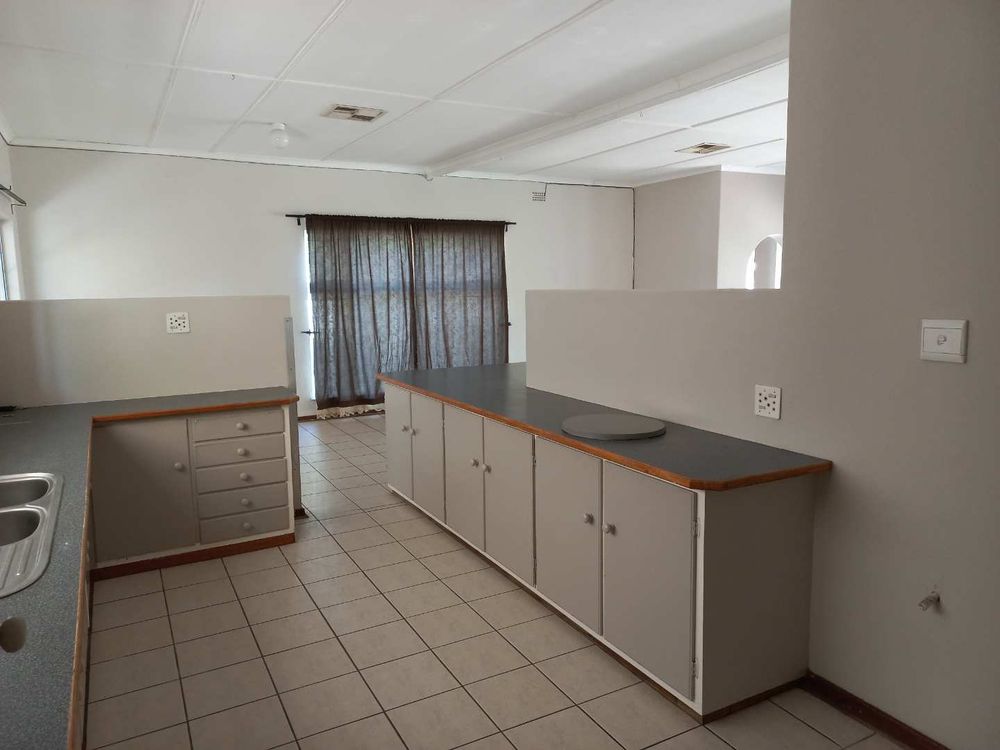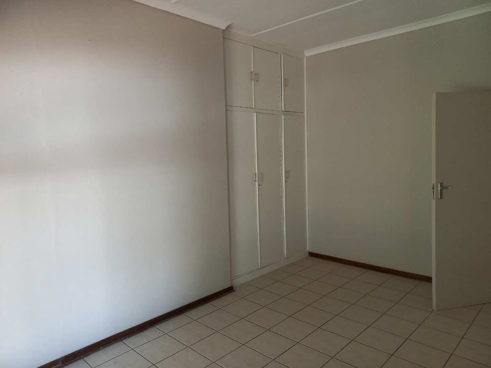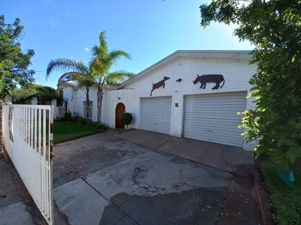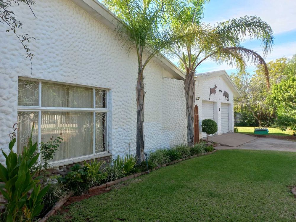The house offers 3 very spacious bedrooms and a 4th smaller bedroom which can also be used as a study. All the bedrooms have built-in cupboards. The main bedroom is build on master scale with built-in cupboards galore, and its own en-suit and full bathroom. The other bathroom has a bath, basin and separate toilet. On entering the front door and entrance hall, you are welcomed by a very large open plan family, dining room and kitchen. Sliding doors open on a large patio with built-in braai. A very nice entertainment area! The outbuildings consist out of a double garage and 2 rooms with a shower and toilet. These areas can be used as a storeroom and laundry, or you can convert it into a batchelor’s flat for an extra income or even an extra guest room. The garden has auto irrigation and is very well kept. The property is secured with burglar bars and is totally walled.