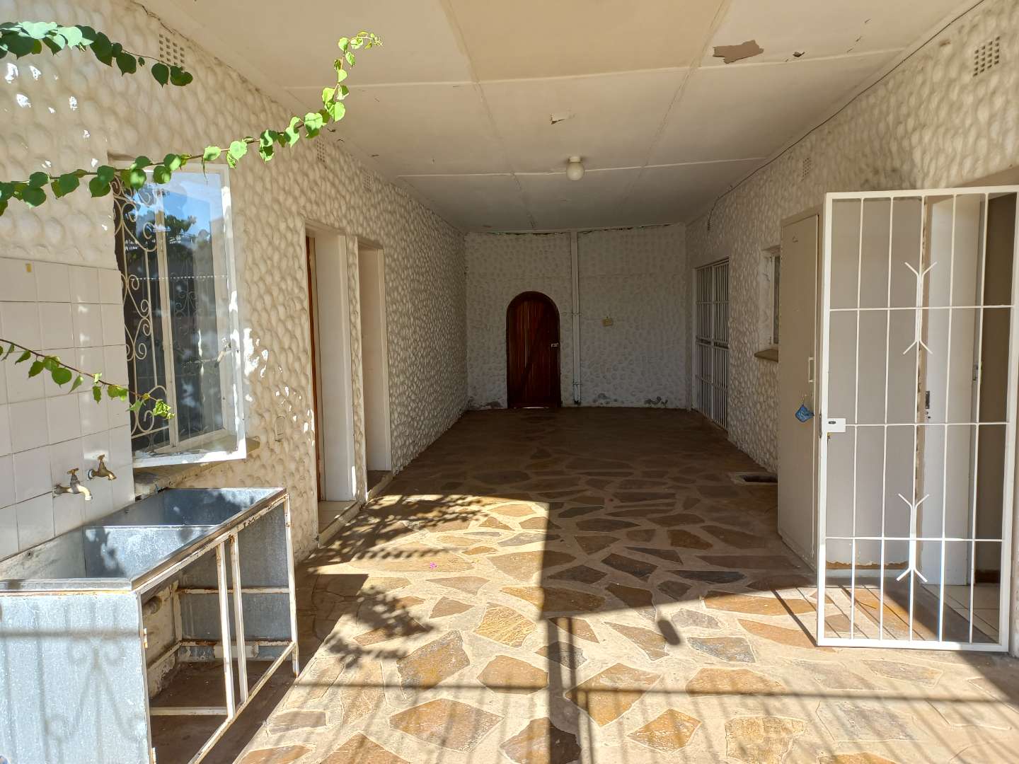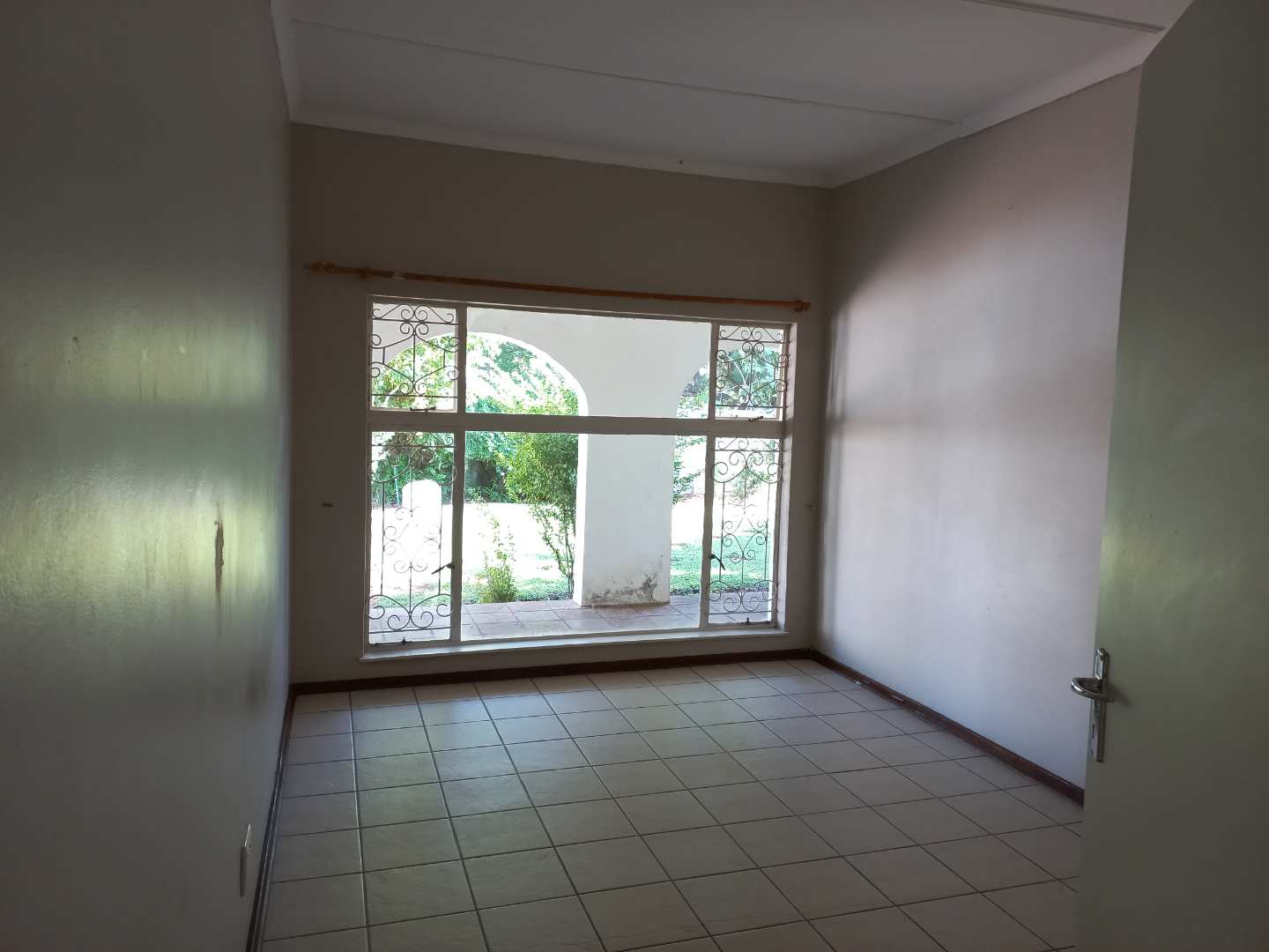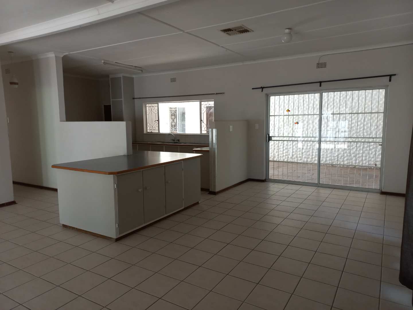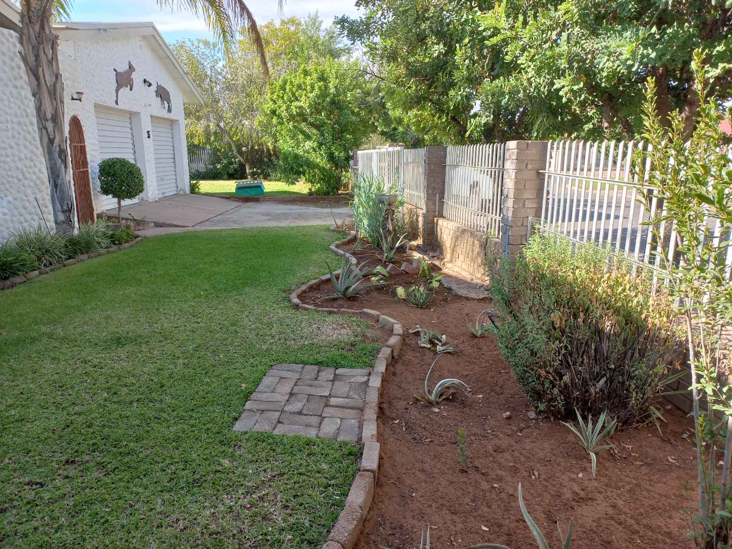 The house offers 3 very spacious bedrooms and a 4th smaller bedroom which can also be used as a study. All the bedrooms have built-in cupboards. The main bedroom is build on master scale with built-in cupboards galore, and its own en-suit and full bathroom. The other bathroom has a bath, basin and separate toilet. On entering the front door and entrance hall, you are welcomed by a very large open plan family, dining room and kitchen. Sliding doors open on a large patio with built-in braai. A very nice entertainment area! The outbuildings consist out of a double garage and 2 rooms with a shower and toilet. These areas can be used as a storeroom and laundry, or you can convert it into a batchelor’s flat for an extra income or even an extra guest room. The garden has auto irrigation and is very well kept. The property is secured with burglar bars and is totally walled.