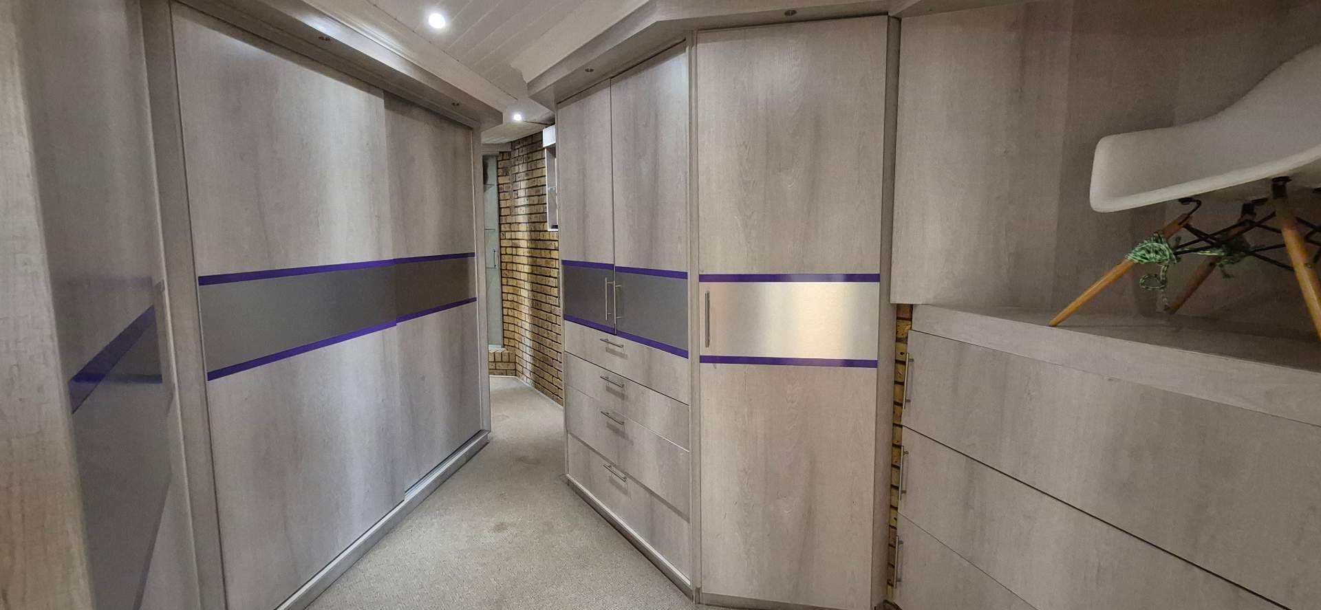 One of the standout features of this home is the dedicated entertainment area, which includes a bar and a built-in braai. This area seamlessly flows into the outdoor space, where a sparkling swimming pool awaits, creating the perfect backdrop for summer gatherings and memorable celebrations.