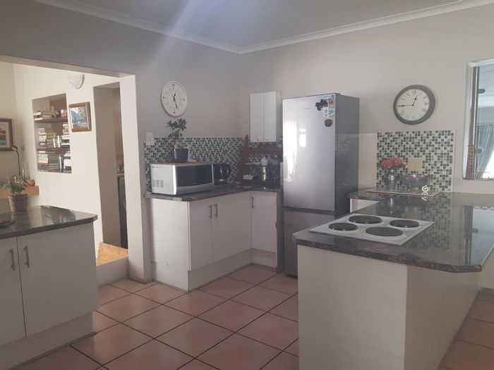 This home is designed for contemporary living, featuring an open-plan layout that seamlessly integrates the family room, dining area with build in braai, and a fully equipped kitchen with a scullery for added convenience.